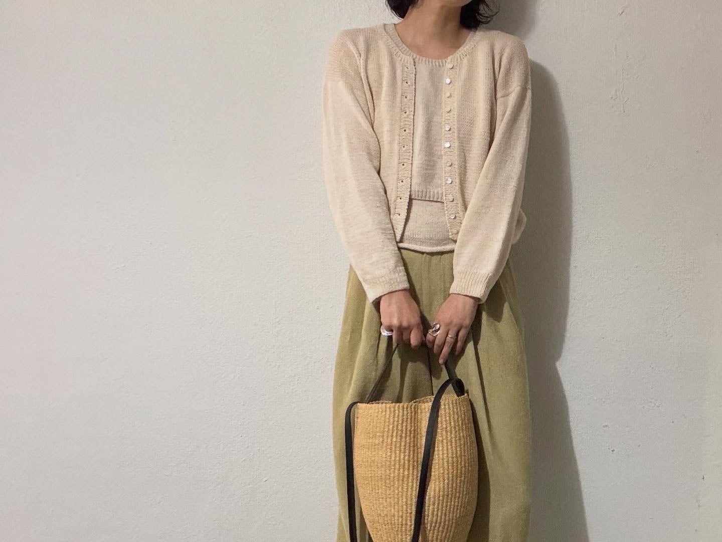 見頃と袖は1本どりで編みますが、前立てと襟は2本どりで編み編み地をしっかりとさせます。