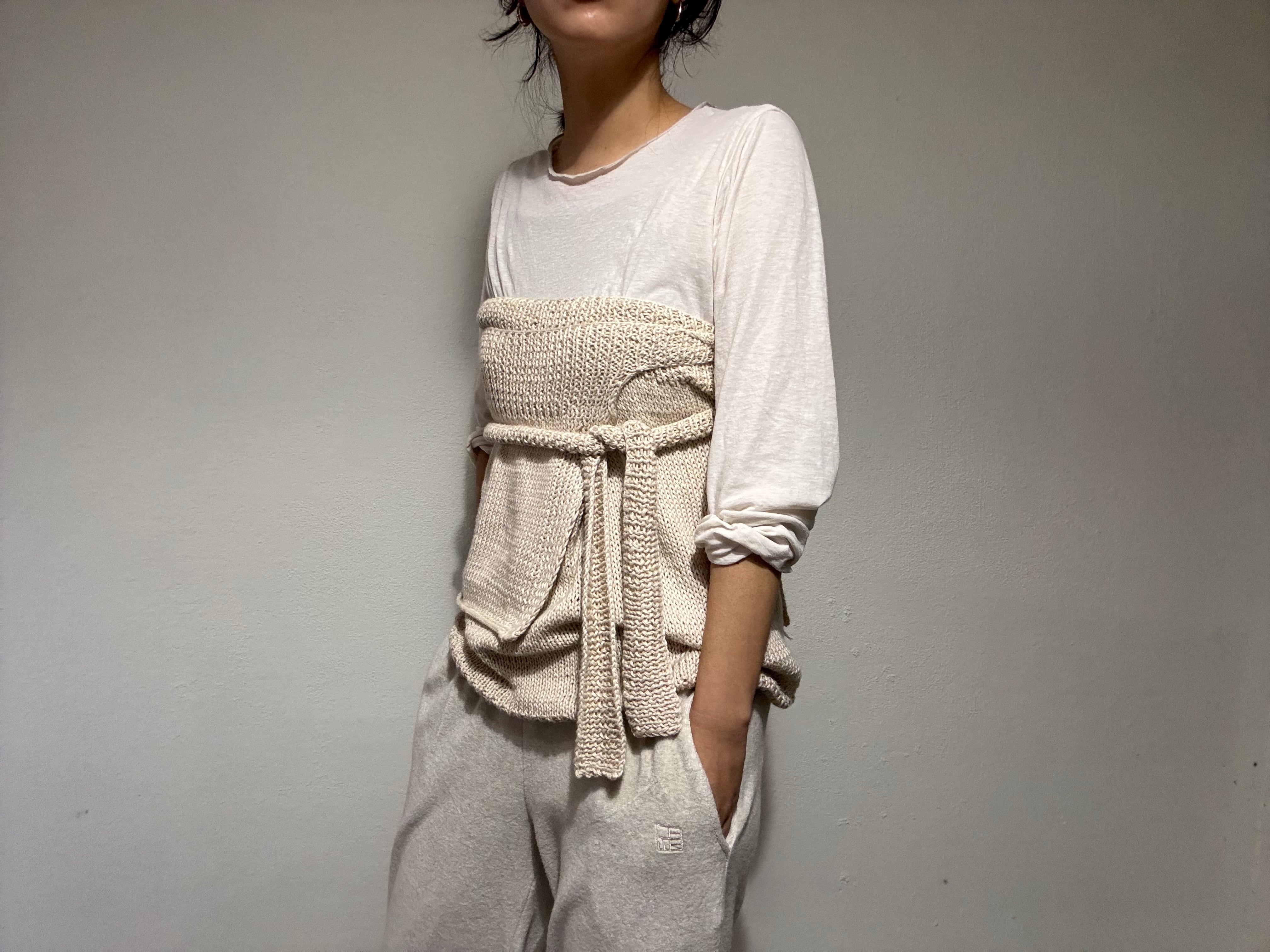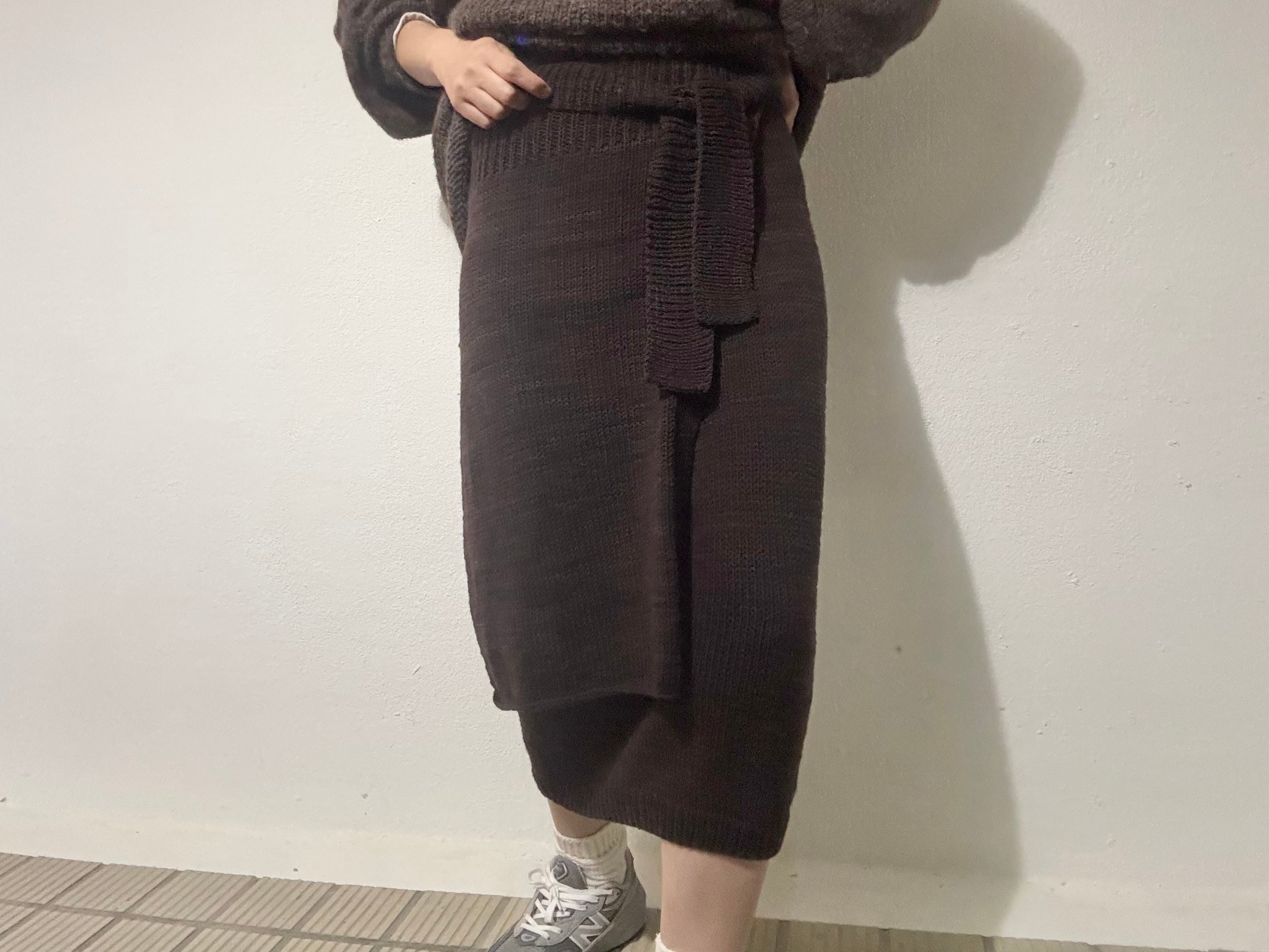 スカート本体とラップ部分を別に編み、ドッキングさせます。